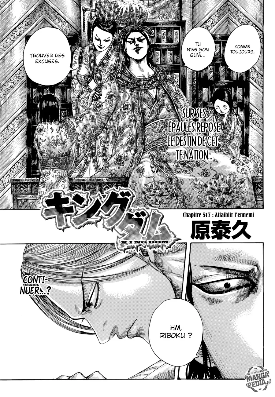 Vous êtes en train de lire Kingdom Chapitre 517 VF en ligne gratuitement sur kingdommangascan.net